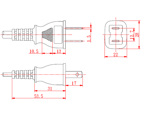 Japan 2-Pin Non-Grounded, Straight AC Plug, 7~15A 125V