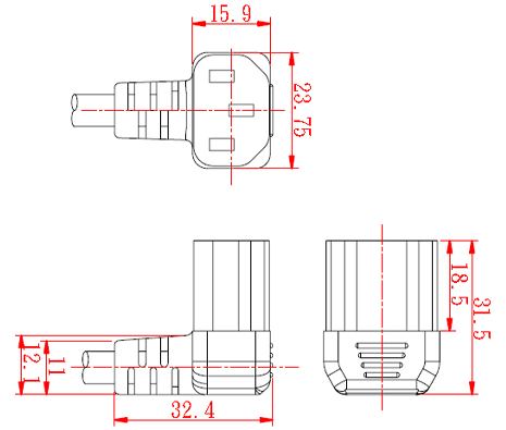 Japan JIS C8303 3-Pin Angle Type AC Connector,7~15A 125V